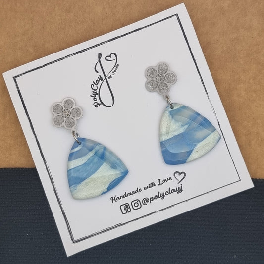 Blue Green and white marble Rounded Triangle dangles (Silver)